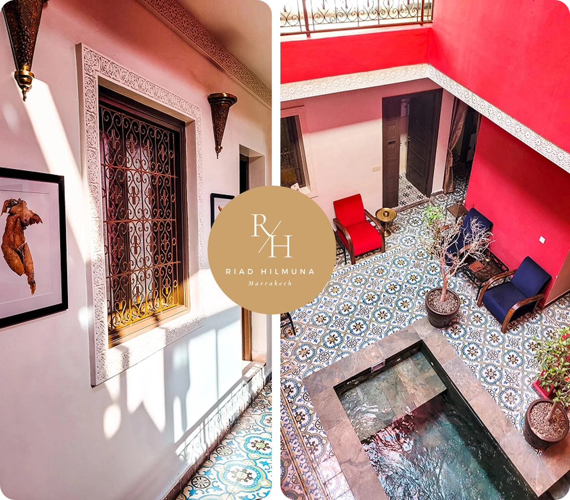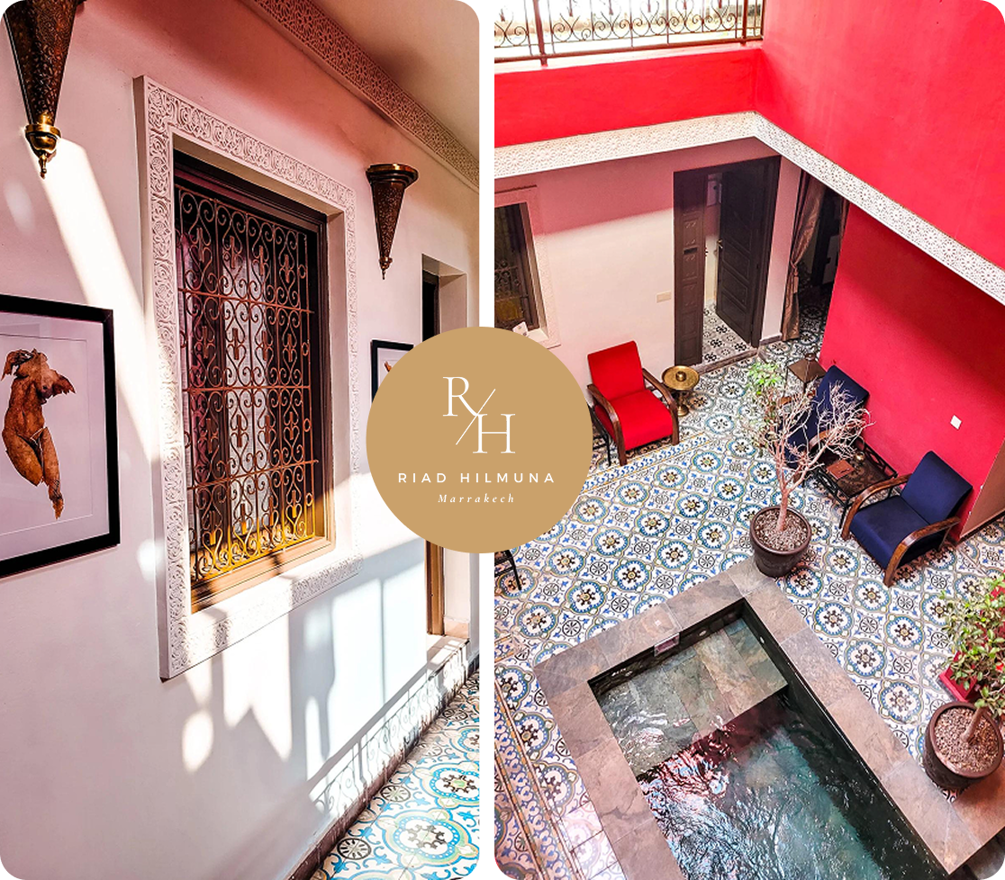 Situé au cœur de Marrakech et à l’entrée de la Médina, le Riad Hilmuna est le point de départ idéal pour explorer les merveilles de Marrakech. Sa position privilégiée vous permet de rejoindre en une quinzaine de minutes à pied, le coeur du quartier Gueliz, le jardin majorelle et la célèbre place Jemaa El Fna.
