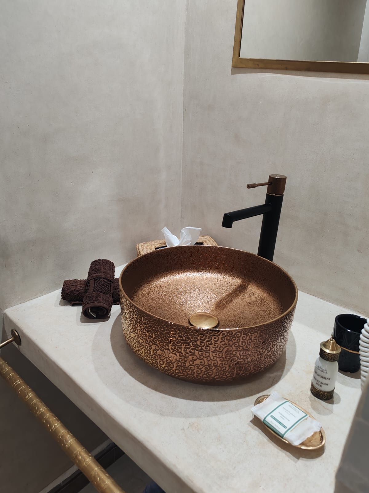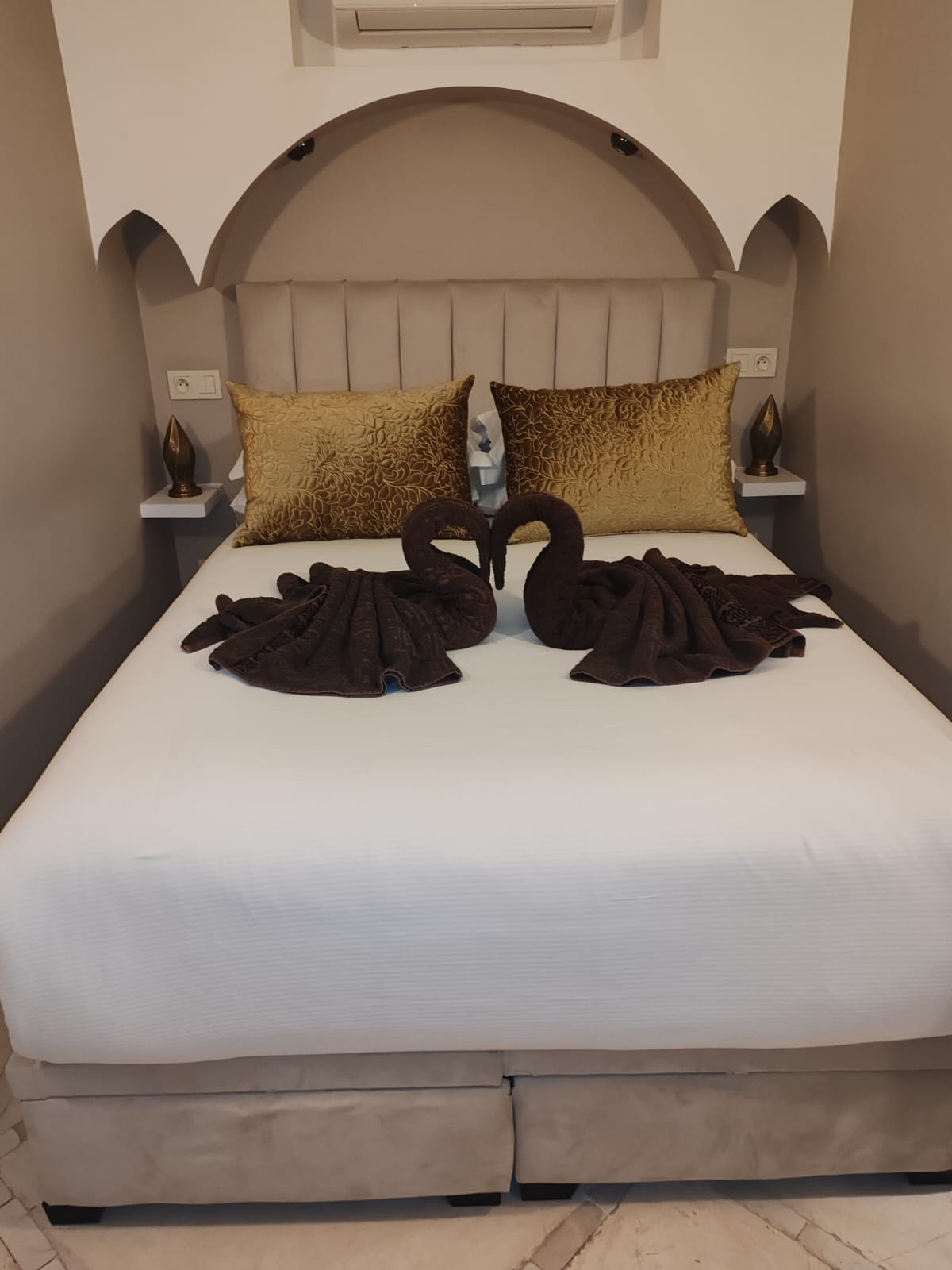 La chambre Ambre, de catégorie supérieure, séduit par sa luminosité et son décor naturel à la fois élégant et apaisant. Pensée pour offrir un séjour reposant, elle se distingue par son agencement soigné, ses matières harmonieuses et son ambiance paisible qui invitent à la détente dès l’entrée. Cette chambre dispose d’une literie confortable, d’une salle de bain moderne et d’un espace privé agréable, offrant ainsi le niveau de confort idéal pour profiter pleinement de l’expérience authentique et chaleureuse du riad.